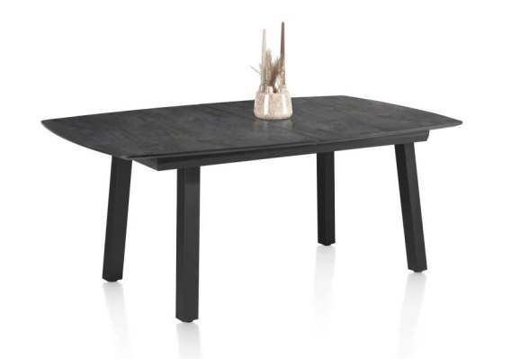 Ten rozkładany stół charakteryzuje się solidną podstawą na czterech nogach oraz kompaktowym blatem o wymiarach 160 x 110 cm, który można łatwo przedłużyć o 50 cm, uzyskując w ten sposób długość 210 cm. Blat stołu, utrzymany w eleganckim, antracytowym odcieniu kamienia, wykonano z Primo Laminato (HPL) - materiału, który jest niezwykle łatwy w pielęgnacji. Stabilną podstawę stołu wykonano z trwałego, czarnego metalu, co nadaje mu nowoczesny i stylowy wygląd.