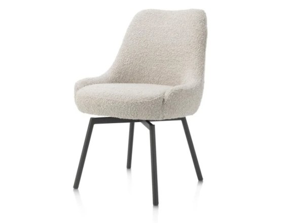 Krzesło jest tapicerowane modną tkaniną Brioni boucle w delikatnym, kremowym odcieniu. Tkanina boucle, znana ze swojej strukturze pętelkowej, jest niezwykle miękka i przyjemna w dotyku, przypominając zamsz, a jednocześnie gwarantuje luksusowy wygląd i wyjątkową trwałość. Mikrofibra, z której jest wykonana, jest odporna na intensywne użytkowanie i łatwa w czyszczeniu, co czyni Rocco idealnym wyborem do codziennego użytkowania w jadalni.