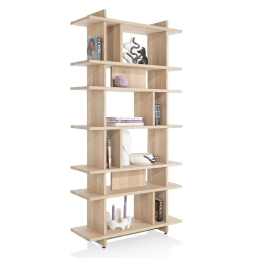 Regał pokojowy z kolekcji Castello to kwintesencja skandynawskiego stylu - jasne drewno w odcieniu sand oak i otwarta konstrukcja nadają mu lekkości oraz nowoczesnego charakteru. Posiada siedem półek o różnych wysokościach, co tworzy efektowny, dynamiczny design. Dzięki szerokości 100 cm i wysokości 200 cm sprawdzi się zarówno jako stylowy regał na książki, jak i praktyczna przegroda do podziału przestrzeni w salonie lub biurze.