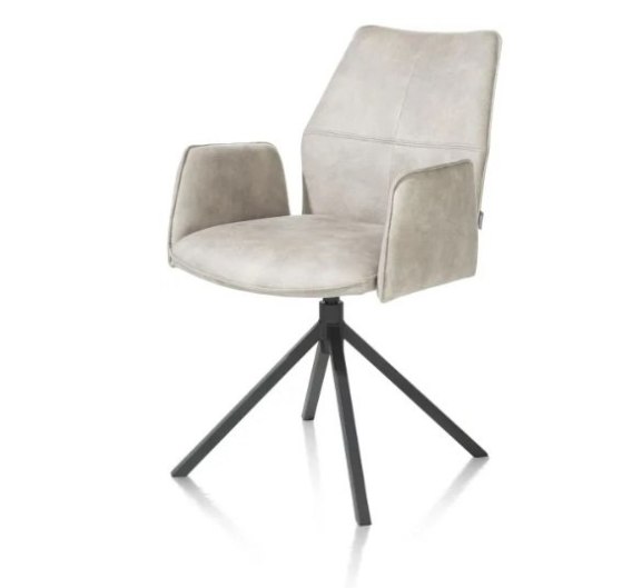 Fotel obrotowy do jadalni Xooon FRANKY z podłokietnikami, tapicerowany tkaniną Taurus i miksem skóry w kolorze krzemowym