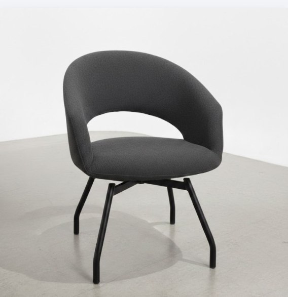 Krzesło obrotowe Haamstede holenderskiej marki Habufa to synonim nowoczesnej elegancji i komfortu klasy premium. Jego unikalna, organiczna bryła z charakterystycznym wycięciem w oparciu nie tylko przyciąga wzrok, ale zapewnia doskonałą ergonomię podczas siedzenia. Model ten został obity luksusową tkaniną szenilową Livigno w głębokim odcieniu antracytu, która dzięki zastosowaniu przędzy o różnych tonacjach oferuje niesamowitą grę barw zależną od kąta padania światła.