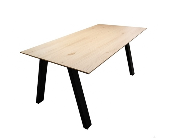 Stół swój nowoczesny design zawdzięcza między innymi specjalnym nogom. Są one wykonane z metalu i mają oryginalny kształt. Blat został zabezpieczony najwyższej klasy lakierem z utwardzaczem.