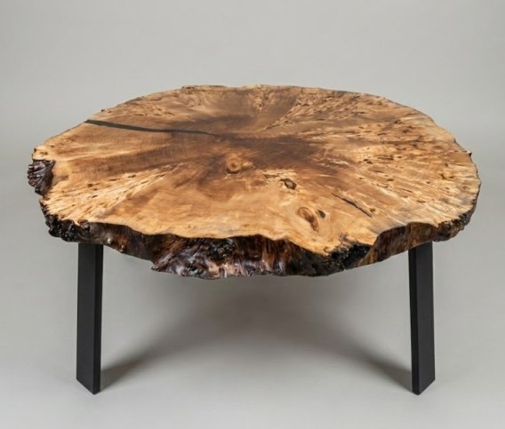 Ten stolik to unikat w skali światowej. Wykonany z potężnego plastra niezwykle rzadkiej czeczoty topoli o wymiarach 108x106 cm i grubości aż 9 cm. Blat zachwyca malowniczym wzorem "oczek" i splątanych włókien. Profesjonalnie zabezpieczony, osadzony na stabilnych, czarnych nogach. Mebel dla konesera.