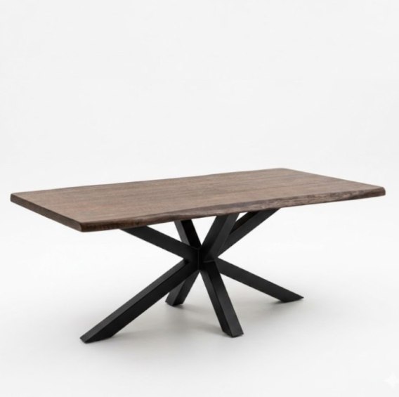 Największym atutem modelu MASIV jest jego żywa krawędź (Live Edge). Naturalna, nieregularna linia boku stołu sprawia, że każdy egzemplarz jest absolutnie unikatowy - nie ma dwóch identycznych blatów. Widoczne sęki i naturalne pęknięcia nie są maskowane, lecz wyeksponowane, co podkreśla rzemieślniczy rodowód mebla. Całość zabezpieczono wysokiej klasy matowym lakierem, który chroni drewno przed codziennym użytkowaniem, zachowując jego surową strukturę pod palcami. To idealny wybór dla osób szukających solidnego stołu z "duszą", który stanie się sercem nowoczesnej jadalni.