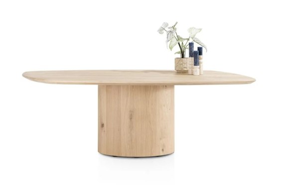 Stół PALMA marki Xooon to propozycja dla osób poszukujących harmonii między nowoczesnym designem a naturalnymi materiałami. Ten model wyróżnia się organiczną formą blatu oraz charakterystyczną podstawą w kształcie elipsy, co nadaje mu lekkości i wizualnej spójności - mimo solidnej, dębowej konstrukcji.