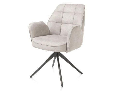 Krzesło do jadalni Bell w wersji z podłokietnikami to idealne połączenie stylu i komfortu. Tapicerowane w całości wysokiej jakości mikrofibrą Calabria, prezentuje elegancki wygląd i przyjemną w dotyku fakturę. Dekoracyjne przeszycia w kształcie rombów na tylnej części oparcia nadają mu wyjątkowy charakter, a zastosowanie sprężyn kieszeniowych w siedzisku zapewnia maksymalną wygodę. Dodatkowe podłokietniki zwiększają komfort użytkowania, a obrotowa podstawa w grafitowym kolorze ułatwia swobodne poruszanie się przy stole.