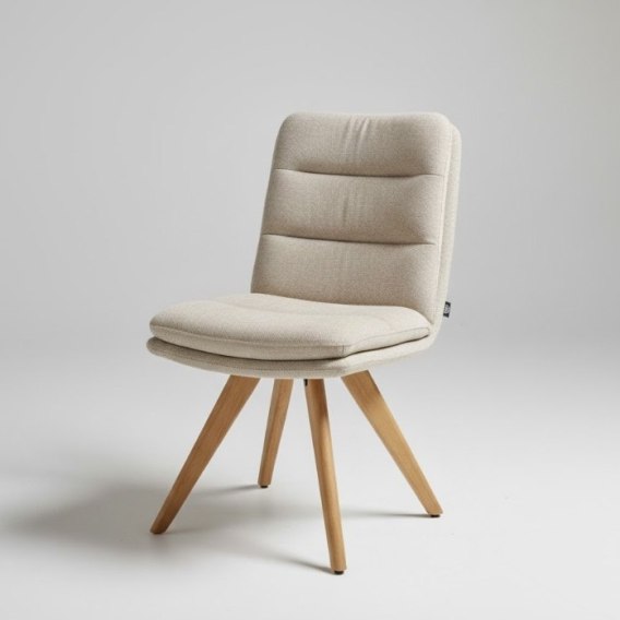 Krzesło Mia to stylowy i funkcjonalny wybór do każdej jadalni. Osadzone na dębowej, centralnej podstawie obrotowej z funkcją automatycznego powrotu, gwarantuje wygodę na co dzień - bez konieczności ręcznego ustawiania.