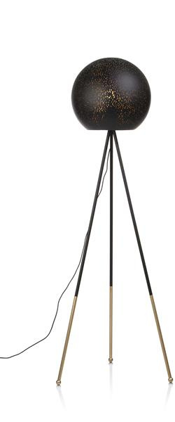 Piękna lampa podłogowa CHIARA od COCO maison tworzy niesamowitą atmosferę! Ta lampa podłogowa ma wygląd retro i zapewnia nastrojowe światło przez małe otwory w kloszu. Dzięki matowemu czarnemu kolorowi ze złotym wnętrzem lampa ta świetnie prezentuje się również jako dekoracja. Klosz ma średnicę 40 cm, odstęp między statywami wynosi 62 cm, a wysokość CHIARA wynosi 160 cm. Lampy tej nie można ściemniać i jest dostarczana bez źródła światła.