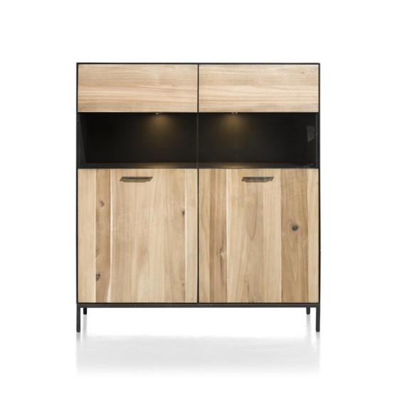 Elegancki, niższy kredens/witryna z bestsellerowej kolekcji Lugal, stworzonej przez renomowaną Grupę Habufa. Ten mebel to idealne połączenie wysokiej jakości wykonania i nowoczesnej estetyki, typowej dla holenderskiego designu. Wykończenie Tramwood Smoke – unikatowy, głęboki odcień fornirowanego dębu – nadaje całości szlachetności, jednocześnie zachowując lekko industrialny charakter. Kontrastujące czarne metalowe detale, charakterystyczne dla tej kolekcji, podkreślają jej nowoczesny styl. Witryna ma konstrukcję 2-drzwiową, częściowo przeszkloną, co pozwala na stylową i bezpieczną ekspozycję cennych przedmiotów. W zestawie znajduje się oświetlenie LED, które subtelnie podświetla wnętrze i eksponaty, budując ciepłą i luksusową atmosferę. System cichego domykania drzwi gwarantuje komfort i trwałość na lata, co jest znakiem rozpoznawczym produktów Habufa.