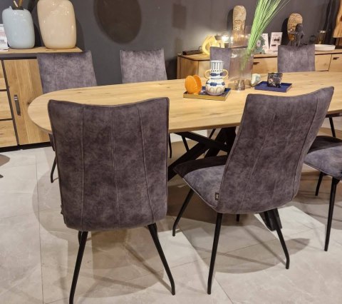 Krzesła dostępne z wyborem od ręki. Tapicerowane materiałem Goya.
