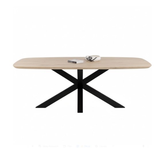 Seria stołów Shimla wyróżnia się skandynawskim designem, który łączy naturalne piękno litego niemieckiego dębu z klasyczną formą. Charakterystycznym elementem jest unikalna, krzyżowa konstrukcja metalowej nogi typu pająk z grubego profilu, która zapewnia stabilność i dodaje całości nowoczesnego, industrialnego uroku. Owalny blat, pozbawiony ostrych krawędzi, harmonizuje z minimalistycznym stylem skandynawskim, podkreślając prostotę i funkcjonalność. Stół ten idealnie sprawdzi się w jasnych, przestronnych wnętrzach, w których dominuje natura i lekkość formy.