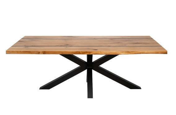 Stół osadzono na stabilnej, centralnej konstrukcji nóg typu "pająk". Metalowe nogi w kolorze czarnym nie tylko zapewniają doskonałą stabilność, ale także dodają meblowi industrialnego charakteru, idealnie komponując się z ciepłem dębowego blatu. 'River' to idealny wybór do nowoczesnych jadalni, salonów czy biur, gdzie design i funkcjonalność idą w parze. To mebel, który przyciągnie wzrok gości i stanie się sercem Twojego wnętrza na długie lata.