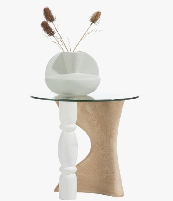 • Stolik Boczny/Pomocniczy ANNA Coco Maison, Szklany Blat, Podstawa Rzeźbiarska Polyresin, Kolor Biały/Naturalny