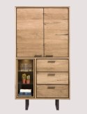 Szafka do przechowywania Denmark ma ładny i kompaktowy kształt, ale wciąż oferuje dużo miejsca do przechowywania! Szafka zawiera 2 drzwi i 3 szuflady, a w 3 otwartych niszach możesz wyeksponować swoje najpiękniejsze rzeczy. Metalowe nóżki nadają mu elegancki, industrialny wygląd.